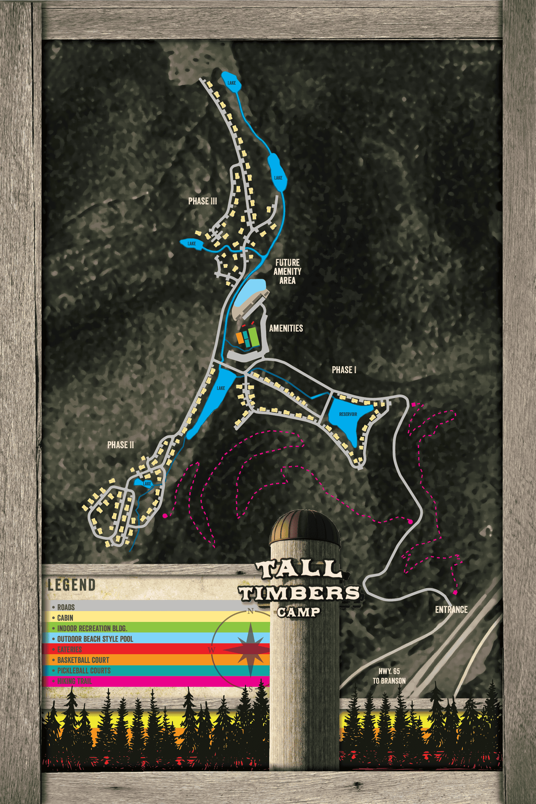 Navigate the enchanting landscape of Tall Timbers with our detailed site map. Discover the perfect path to your cabin, amenities, and the natural wonders that await as you embark on a journey through this idyllic retreat in the heart of the Ozarks.